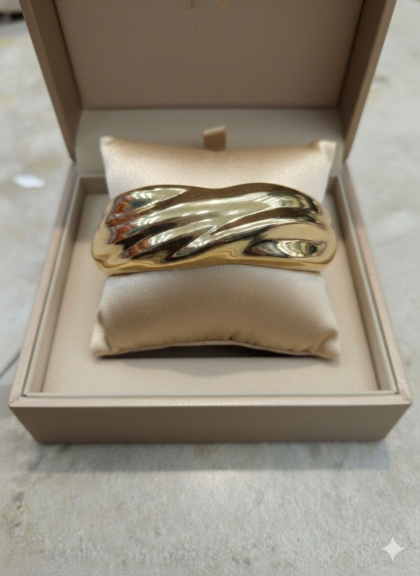 Make a bold style statement with this stunning gold wave cuff bracelet, designed with smooth flowing curves that reflect modern elegance and artistic charm. The sculpted wave pattern gives it a unique, fluid look, while the high-polish gold finish adds a luxurious shine.