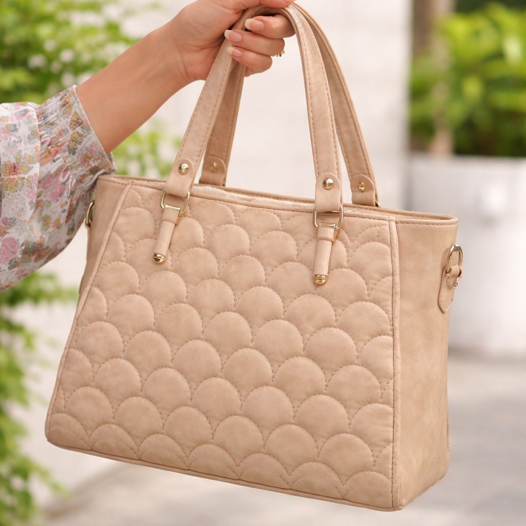 Elevate your everyday style with this luxurious beige quilted tote handbag, designed for elegance and practicality. Featuring a beautifully stitched quilted pattern, this bag offers a sophisticated look that complements both formal and casual outfits.