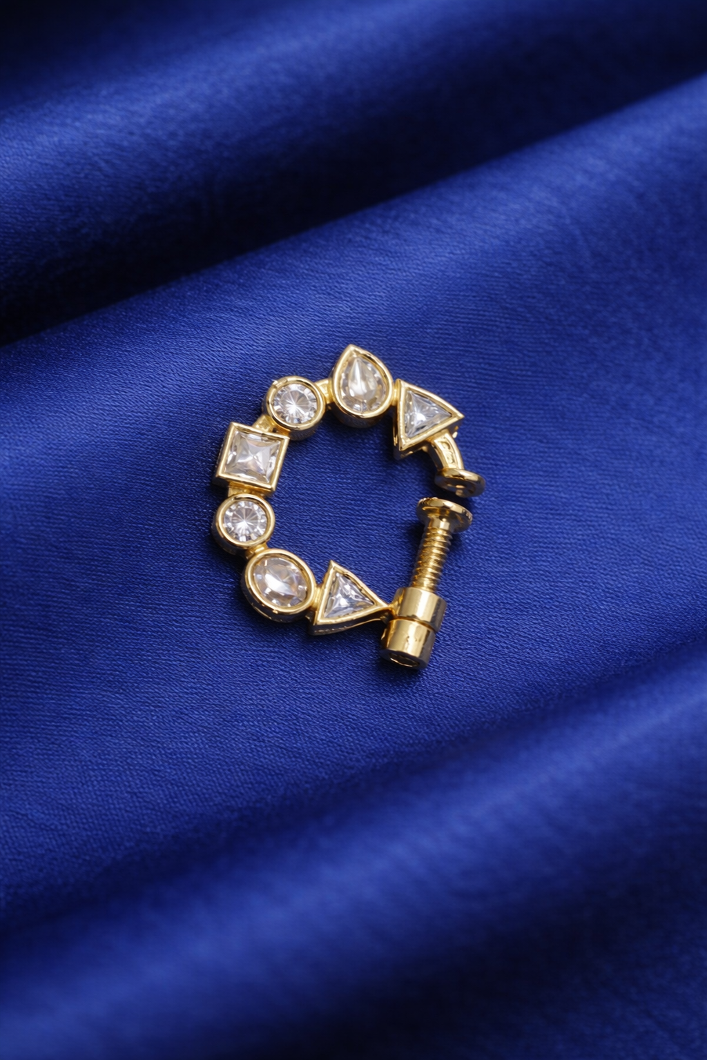 Enhance your jewelry collection with this eye-catching gold-tone geometric crystal ring, designed to bring a perfect blend of elegance and modern style. Featuring a stunning arrangement of round, square, triangular, and pear-shaped crystals, this ring delivers a unique and sophisticated look that sparkles beautifully with every movement.