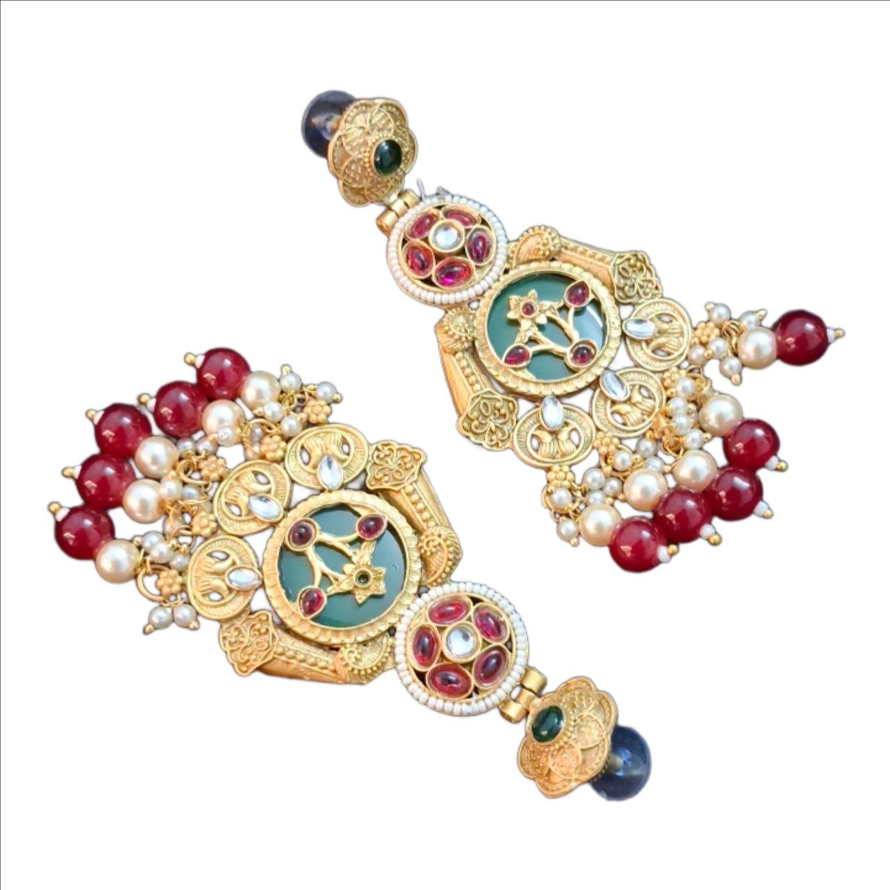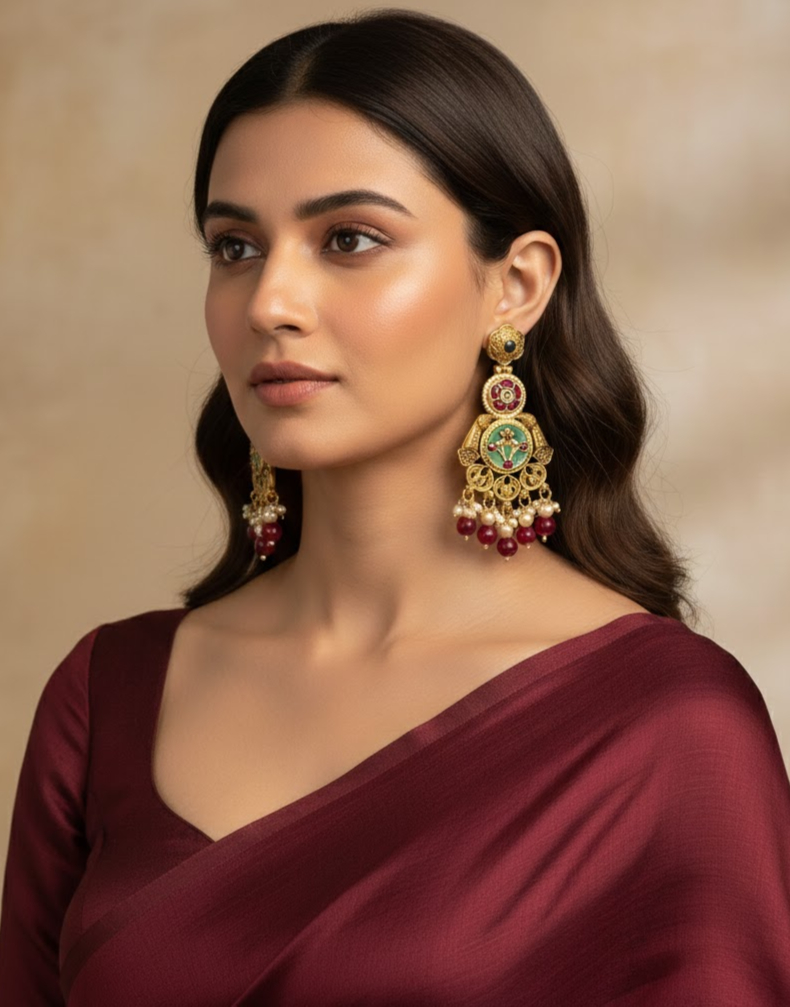 Perfect for weddings, ethnic wear, and special occasions, these earrings combine heritage craftsmanship with a bold, luxurious finish that complements sarees, lehengas, and Indo-western outfits.
