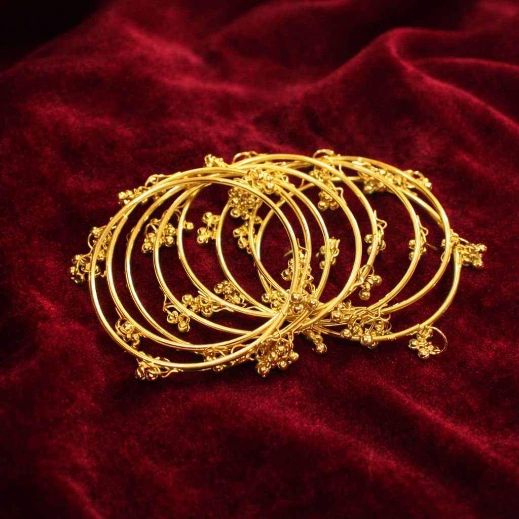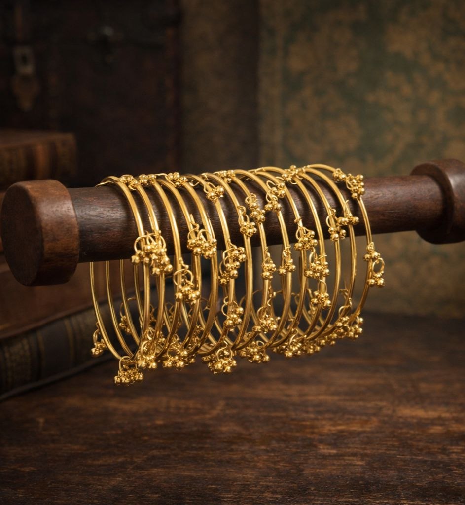 Enhance your ethnic charm with this Kashmiri chuddi/bangles, beautifully designed with delicate bead accents for a graceful and festive look. These slim bangles feature intricate detailing with tiny golden beads and subtle motifs, giving them a traditional yet lightweight appeal.