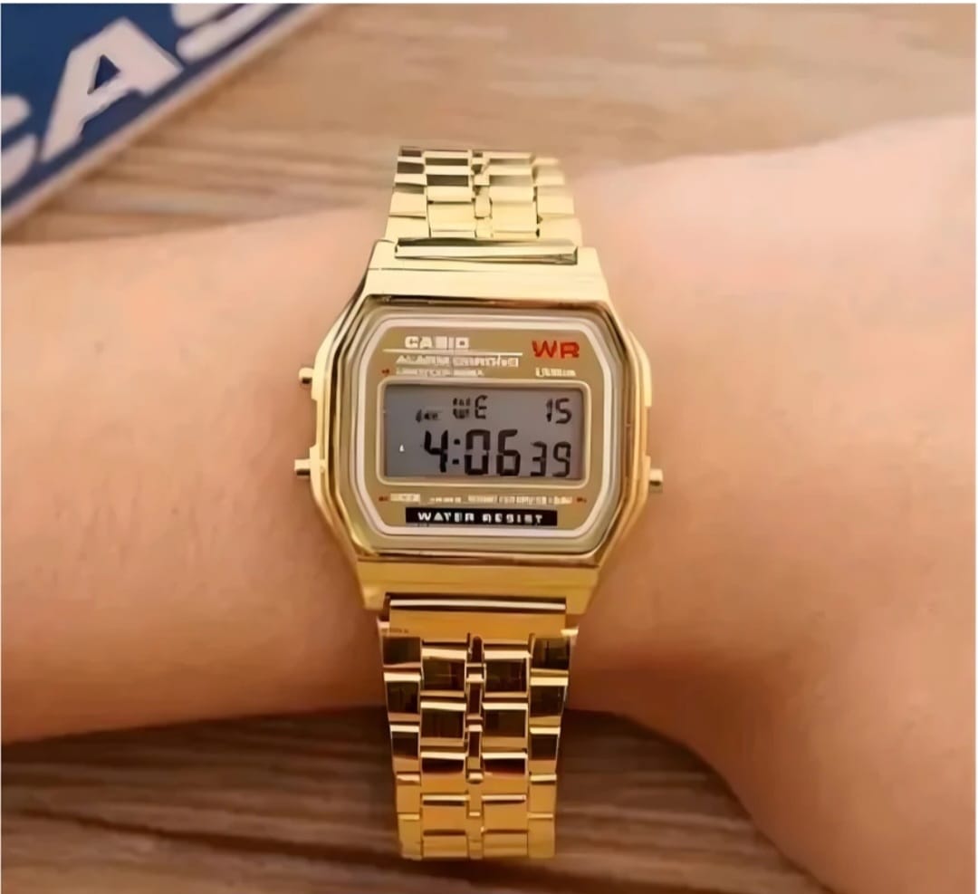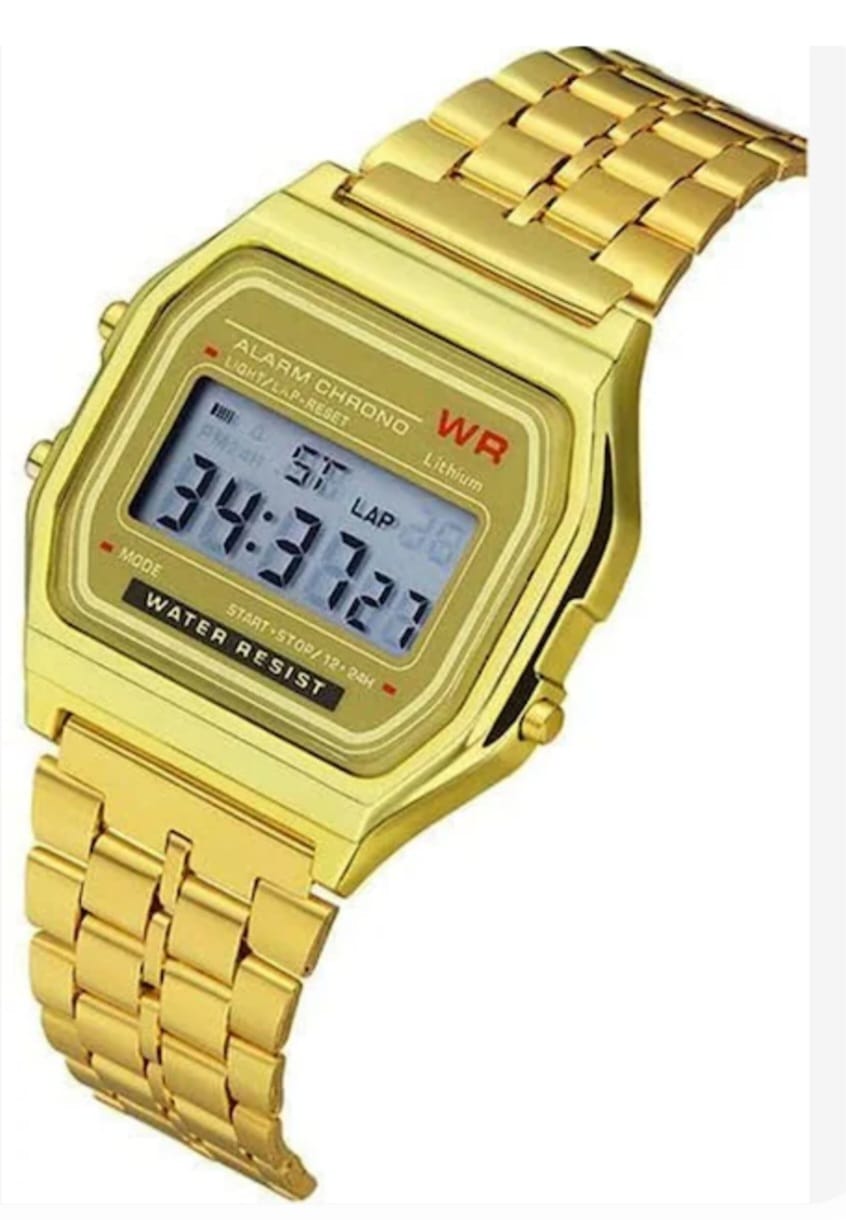 A classic retro-style digital watch featuring a gold stainless-steel strap and clear display. Lightweight, comfortable, and perfect for daily wear, college, and casual outings. Shows time, date, and alarm with a simple, easy-to-read screen and durable everyday build.